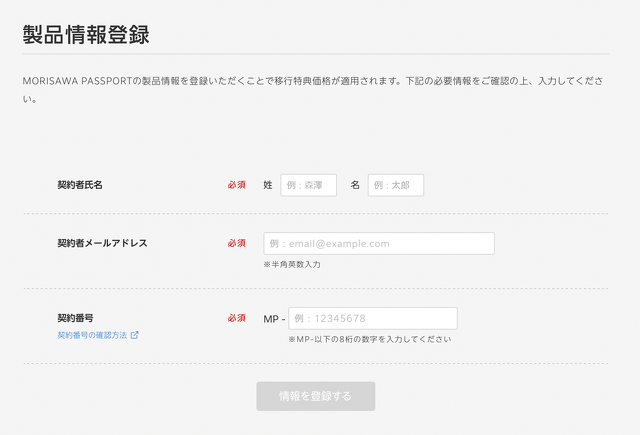 (この製品情報登録をおこなわないと、移行キャンペーンの適用がされませんのでご注意ください)