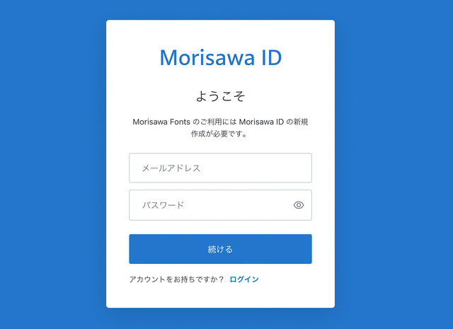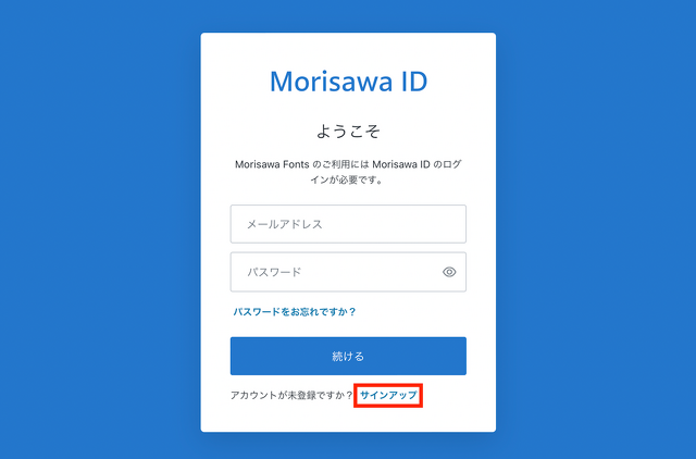 Morisawa IDのログイン画面が表示されます。画面下の「サインアップ」をクリックしてください。