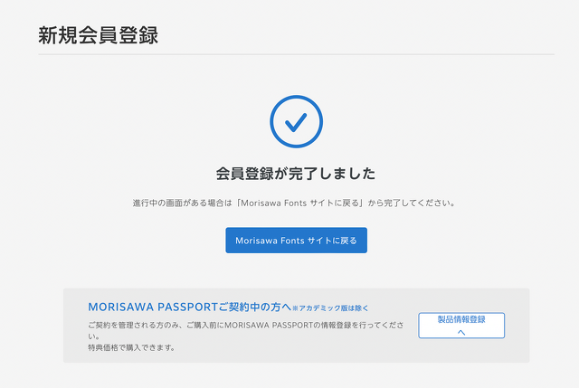 これで「Morisawa ID」作成および製品情報登録の紐付けは完了です。