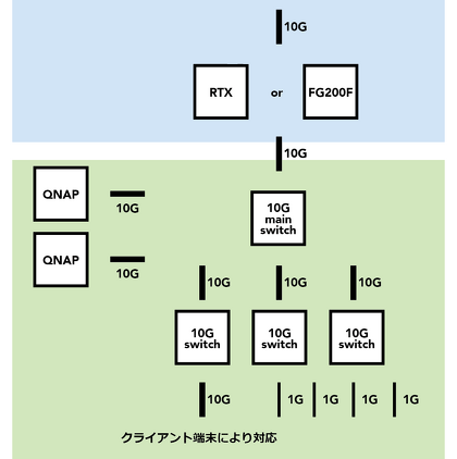 今までは、すべて1000BASE-T(1GbE)前提で構築されてきました。