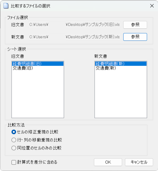 比較するワークシートを設定するため、両方のExcelファイルに複数のワークシートがあっても比較できます。
