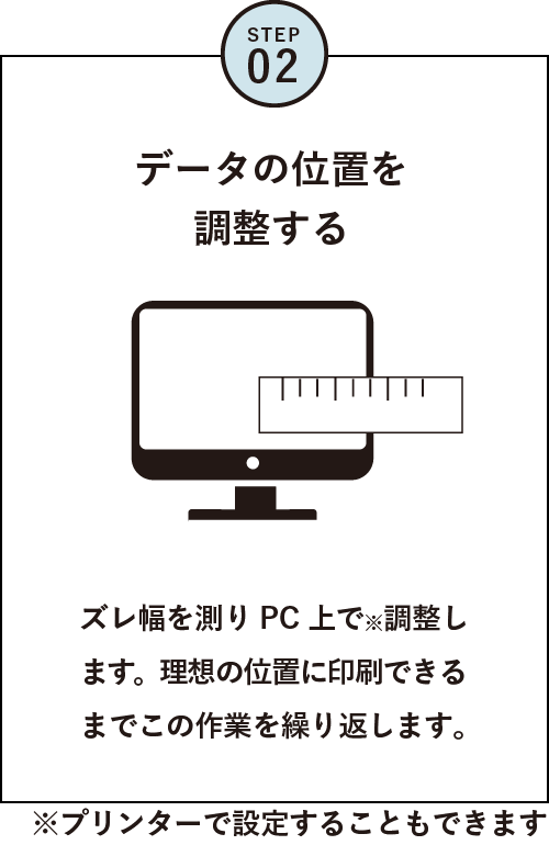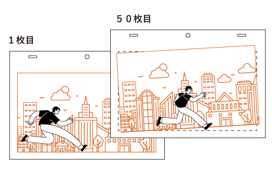 印字位置がズレにくいので修正作業は最初の1枚目だけ。 ※用紙のロットが変わる度に作業が必要になる場合もあります。