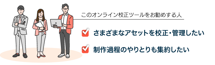 レビューしたいコンテンツや校正回覧の規模など、目的や用途に応じて最適なツールを選択しましょう!