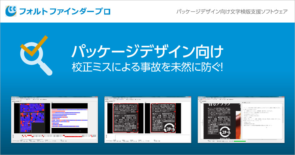 パッケージに記載される原材料や成分表などの原稿とデザイン版下の文字を照合して差異を発見します。