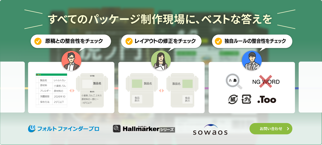 パッケージの表記ミスを未然に防ぎ、制作物に「根拠」と「安心感」が持てます