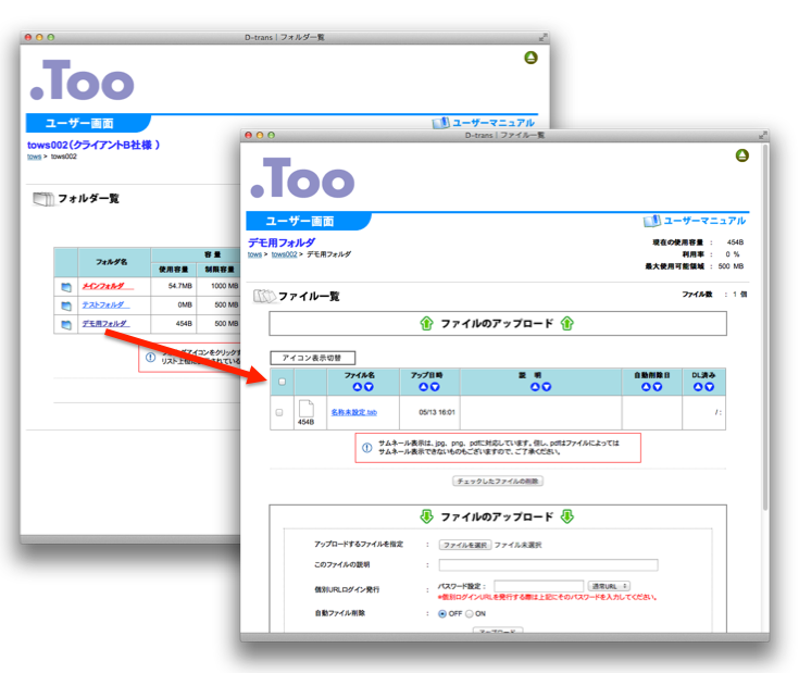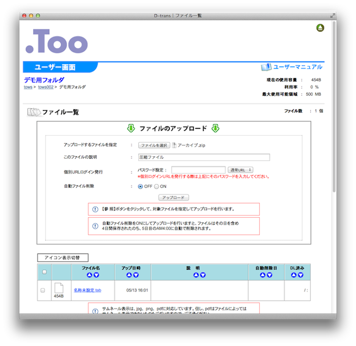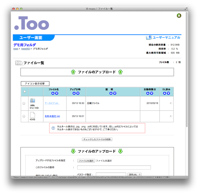 個別にパスワードを設定したファイルについては専用URLが発行されます。