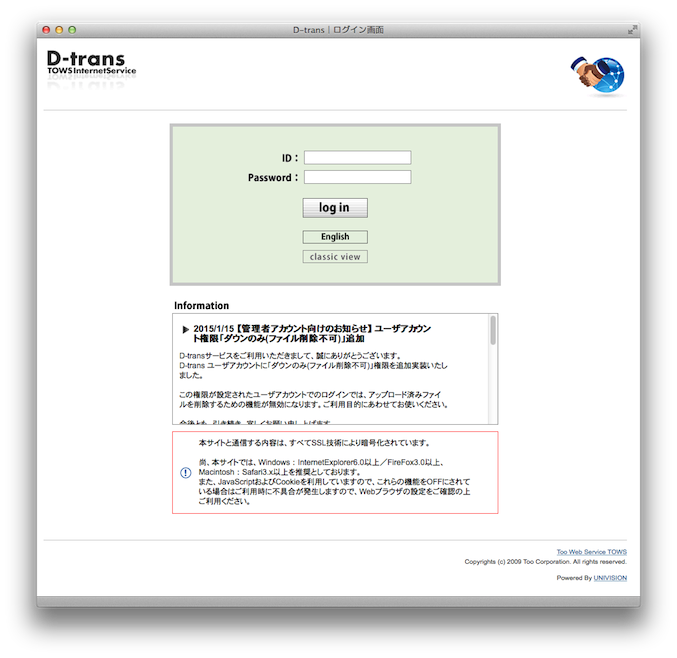 相手先には、URLとID/パスワードを教えるだけ!