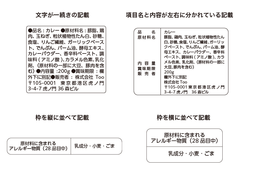 一括表示、栄養成分表示、アレルゲン表示等のチェック