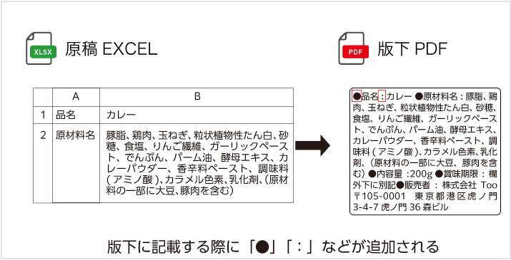 食品パッケージの表示では、下記のような「一括表示」「栄養成分表示」「アレルゲン表示」の原稿との突き合わせシステムから始めることが効果的です。採用されている記載が該当するかどうか、まずはご相談ください。
