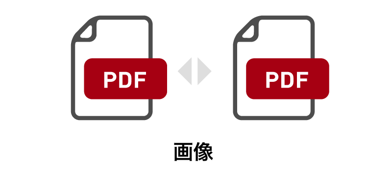 2つのPDF を比較し、異なっている箇所をチェックできます。 デザインの修正前後で、記載情報に過不足がないかをチェックする際などに活用いただけます。