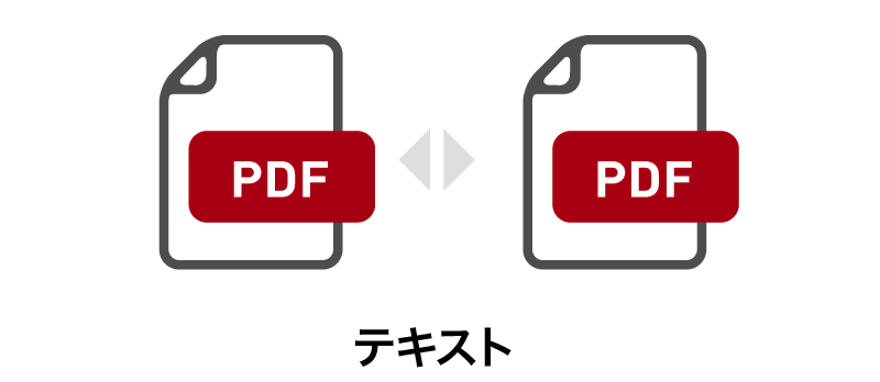 2つのPDFの文字情報を比較し、異なっている箇所をチェックできます。 デザインの修正前後で、記載情報に過不足がないかをチェックする際などに活用いただけます。