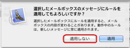 「選択したメールボックスのメッセージにルールを適用してもよろしいですか?」という確認ウィンドウが表示されます。