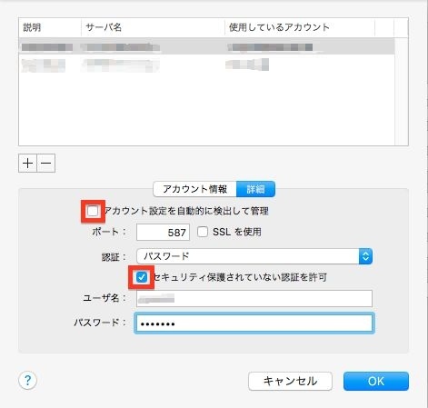 [アカウント設定を自動的に検出して管理]: チェックを外してください。
