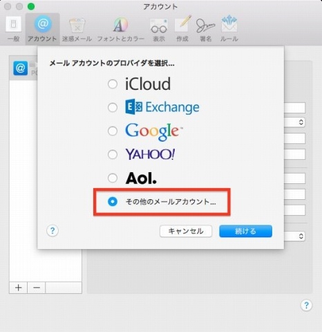 Mac OSX(10.11.x)の標準メールソフトでの設定方法です。