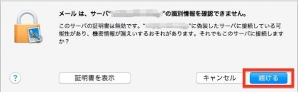 メールは、サーバ "〜" の識別情報を確認できません。