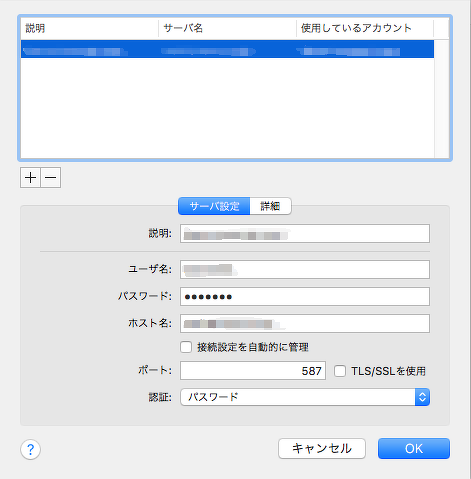 ※OSX 10.13.x のアカウント設定では、まったく同一設定の送信アカウントは重複できません。