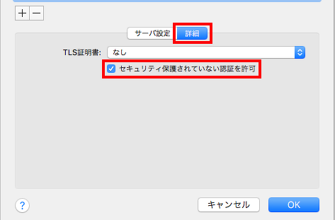 ・「セキュリティ保護されていない認証を許可」チェックを入れてください。