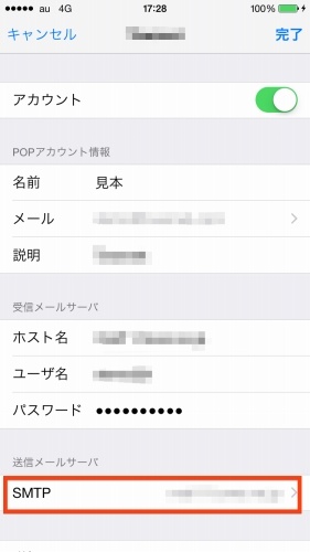 ・パスワード: お客様アカウントの受信用パスワードを入力します。