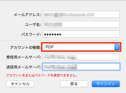 アカウントの種類: POP