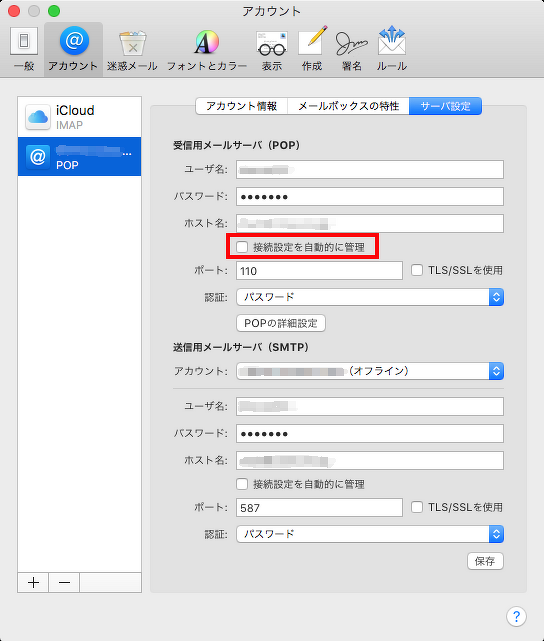 Mac OS (10.14.x) の標準メールソフトでの設定方法です。