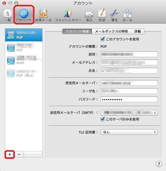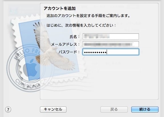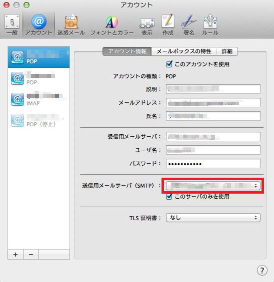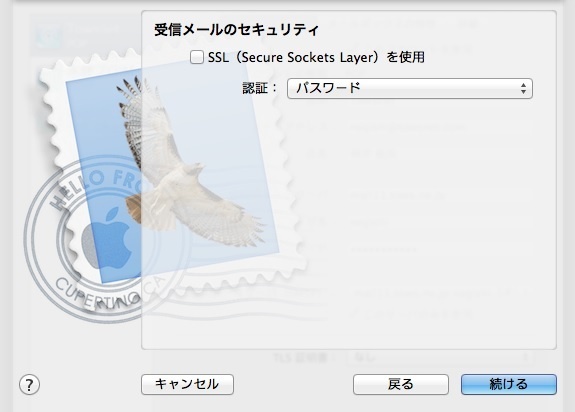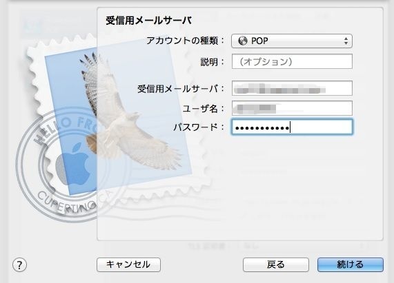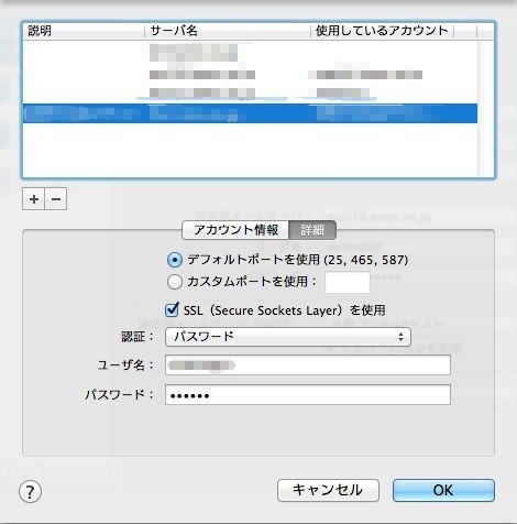 Mac OSX(10.8)の標準メールソフトでの設定方法です。