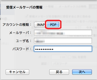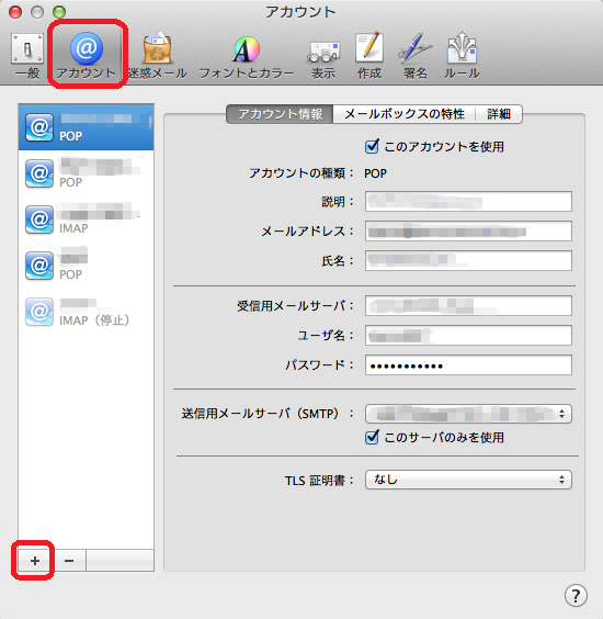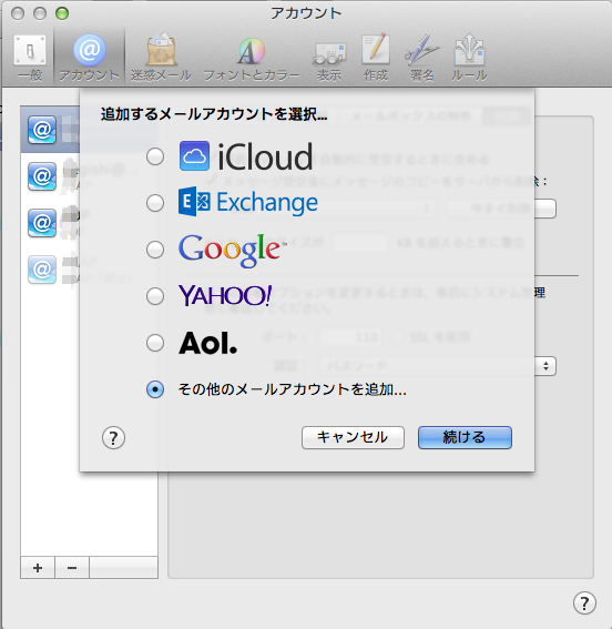 Mac OSX(10.9)の標準メールソフトでの設定方法です。