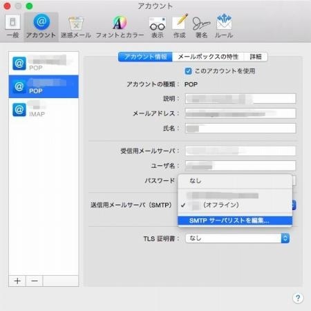 Mac OSX(10.10.x)の標準メールソフトでの設定方法です。