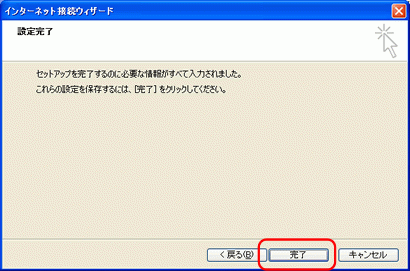 設定が終わりましたら、[ 完了 ]ボタンをクリックして一旦完了します。
