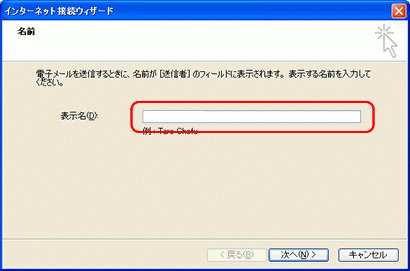 表示名:相手先にメールが届いた際にメールアドレスに代わって表示される差出人呼称です。