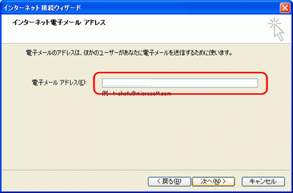 電子メールアドレス:設定したいメールアドレスを入力します。