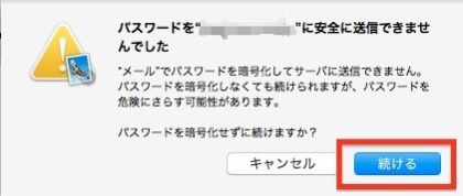 パスワードを (サーバ名) に安全に送信できませんでした。
