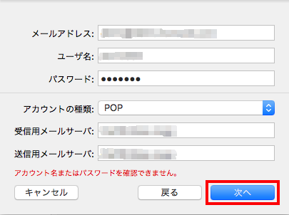 まず、受信用メールサーバ (POP) / 送信用メールサーバ (SMTP) それぞれの