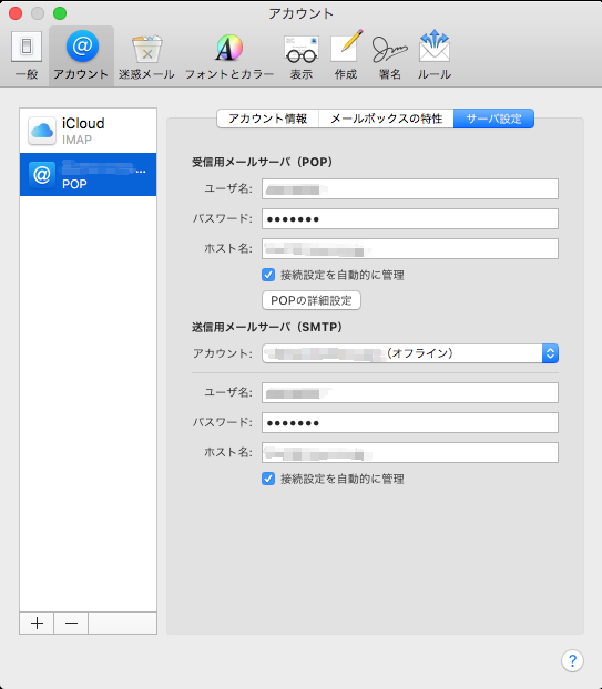 ※OSX 10.14.x のアカウント設定では、まったく同一設定の送信アカウントは重複できません。
