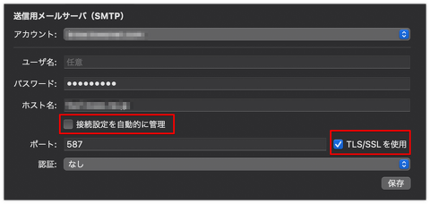 (TLS/SSL を使用 のチェックが外れている場合は、ここでチェックを入れなおしてください。)