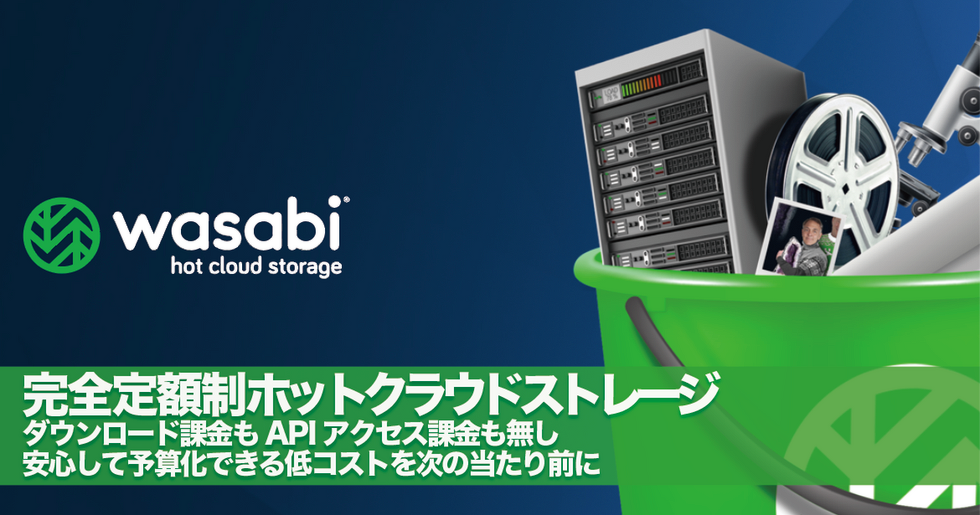 そこで昨今、映像業界をはじめ大容量データを扱う業種にバックアップストレージとして、次々に採用されているのが【Wasabi Hot Cloud Storage】となります。