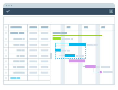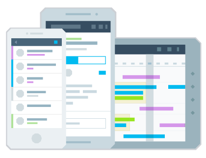 視覚的なタイムラインで、プロジェクトのスケジュールの確認、従属関係の設定をリアルタイムでおこなうことができます。また、チームの働きを簡単に追跡するための調整も可能です。