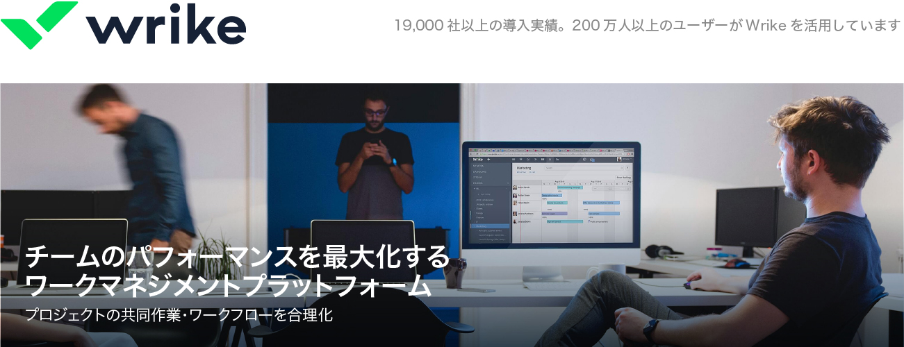 Wrike(ライク)はあらゆる業界のチームの活躍を導く、共同作業とプロジェクト管理のためのクラウドツールです。 可視性を保持し、ワークフローを合理化、計画の立案や管理を簡単におこなえます。