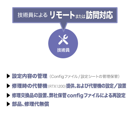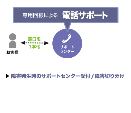 トラブル等の際は、まずサポートセンターにご相談ください。トラブルの原因が、どこにあるのかを切り分けながら、対処方法をご説明します。修理が必要になった場合にはただちに技術員を手配いたします。