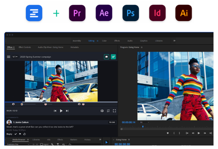 専用のエクステンションを介してZiflowとAdobeCreativeCloudを連携させることができます。デザイナーはAdobeのデザインツールから直接コメントを入れたりファイルをアップロードすることが可能です。