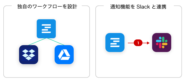 DropboxやGoogleドライブといった、クラウドストレージと統合することによって、クラウドストレージ上でファイルを作成したときにZiflowに新しいプルーフを自動作成が可能です。