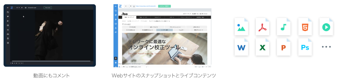 Ziflowは1,200を超えるメディアタイプをサポート。ドキュメントや画像ファイルだけでなく、Webサイトなどさまざまなメディアのオンライン校正が可能です。さらに容量無制限のため、サイズが大きくなりがちな動画ファイルも安心してアップロードいただけます。校正が完了したファイルはそのままZiflow上にアーカイブ。すべての校正物をZiflow上で管理できます。