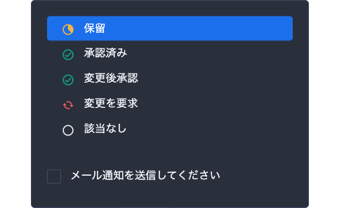 校正者は赤入れが済んだら校正判断(承認)ボタンを押すだけで依頼者に通知できます。(承認ボタンはカスタマイズ可能)