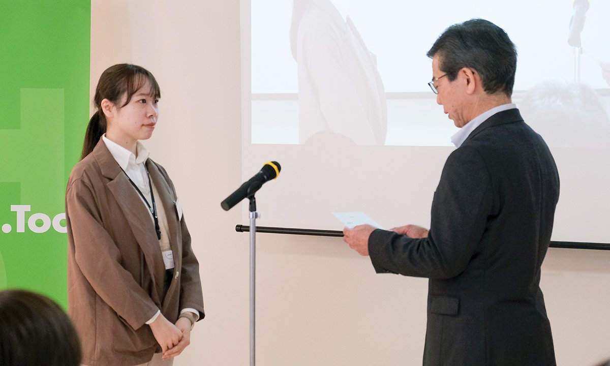 「人は好きなことには、情熱を持って取り組むことができます。情熱を持って取り組むと、成果も出やすく、人からも感謝され、自分の自信に繋がります。好きなこととは、行動する中でどんどんのめり込んで好きになっていくことが多いです。本当に好きなことを見つけるために、まずは行動を積み重ねることを大切にしてみてください。また、皆さんは学生生活にコロナの影響でできなかったことが多い世代だと思います。Tooには部活動もありますので、先輩社員の皆さんとの繋がりを大いに活用し、仕事以外の時間も楽しんでください。本日はおめでとうございます!」