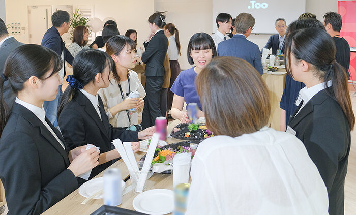 内定者の中には大学1年生の頃からTooの採用イベントに参加してくれていた方もいます。さまざまなタイミングで出会った方々が、選考を経てこの日を一緒に迎え、同期や先輩社員と楽しそうに交流している姿を見られたことは、採用担当として本当に嬉しく、感慨深い瞬間でした。