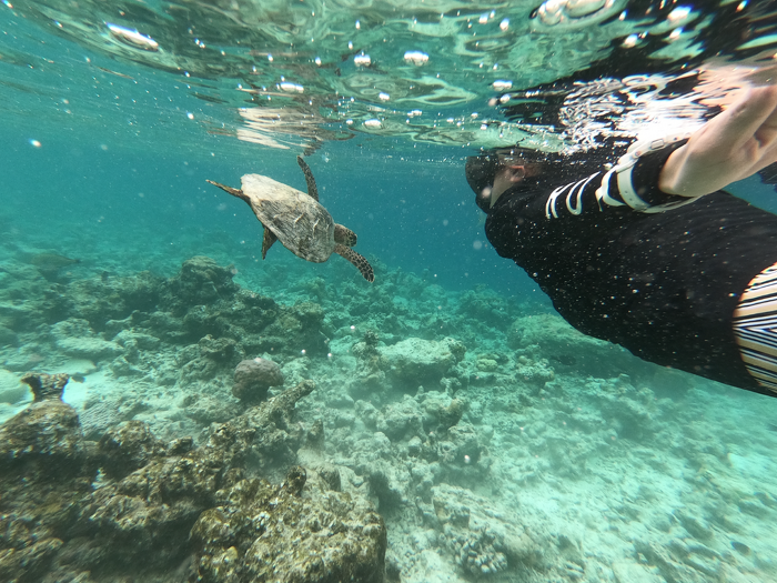 毎朝シュノーケリングをしたのですが、ダイビングをしなくても十分なくらい、すぐ近くで生き物を見ることができました。海が本当に綺麗で忘れられません!また行きたいです。